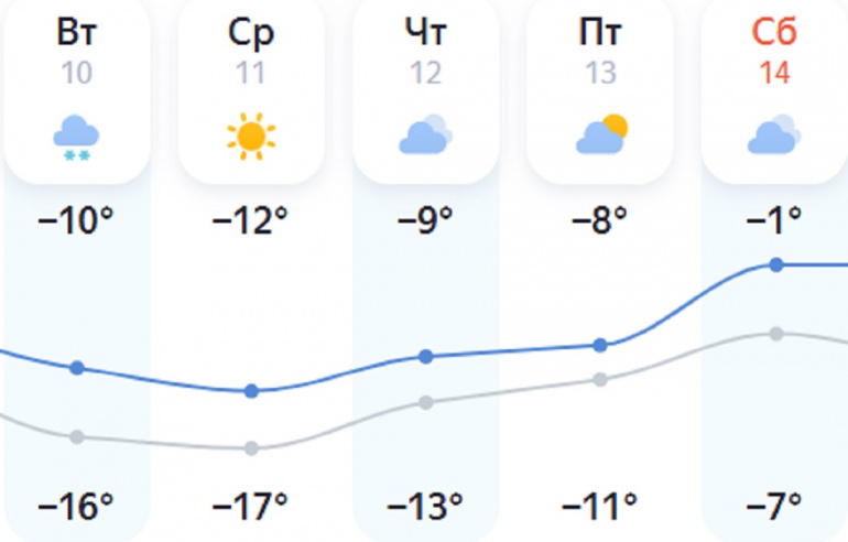 В Челябинске неделя тоже начнётся с облачности с прояснениями, небольшого снега и 6–8 градусов ниже ноля. По данным «Яндекс.Погоды», снегопады задержатся и на вторник. А в среду ожидается ясная солнечная погода.