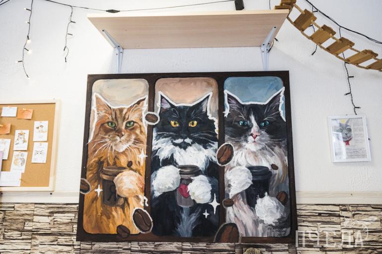 Картина с изображением первых обитателей котокафе