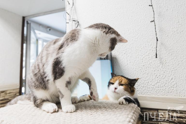 Гаврюша любит проводить время с другими обитателями кафе