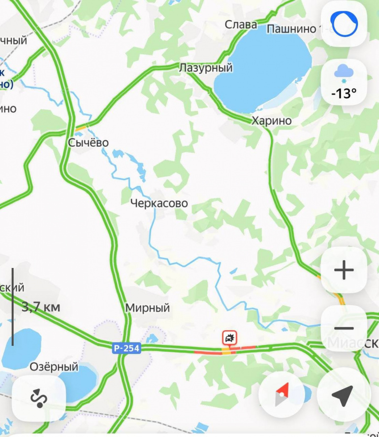 - при движении в сторону Челябинска: съезд на 42 км (на посёлок Лазурный).