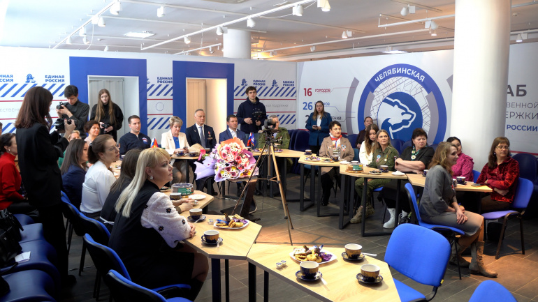В челябинском штабе общественной поддержки «Единой России» поздравили с наступающим 8 Марта жён и матерей участников СВО. Мероприятие проходило в рамках акции «Цветы — мамам героев», инициированной женским движением партии.