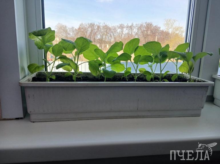 После этого почву увлажняют, ёмкости накрывают плёнкой и ставят в тёплое место. Всходы обычно появляются через 5–7 дней. Как только это произошло, укрытие убирают, а рассаду переносят на светлый подоконник.