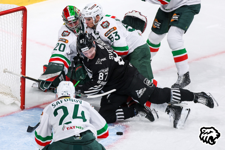 Дополнительное время получилось драматичным: судьи отменили по одной шайбе у каждой команды. Развязка наступила лишь во втором овертайме — победу «Ак Барсу» принёс точный бросок Ильи Сафонова.