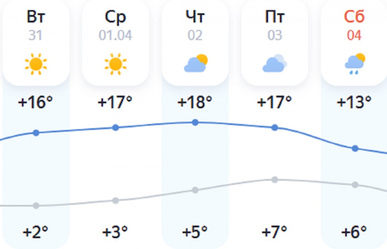И ближайшие дни температура в регионе продолжит повышаться. К примеру, в Челябинске, по прогнозу «Яндекс.Погоды», на этой неделе ожидается до +18 градусов. А осадки могут добраться до города лишь к выходным.