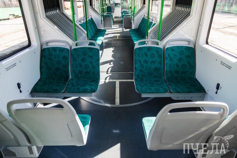 Много конструкторских решений принято именно по салону. В итоге получился трамвай, в котором больше всего сидячих мест — 66, из которых 24 — в низкопольной зоне.