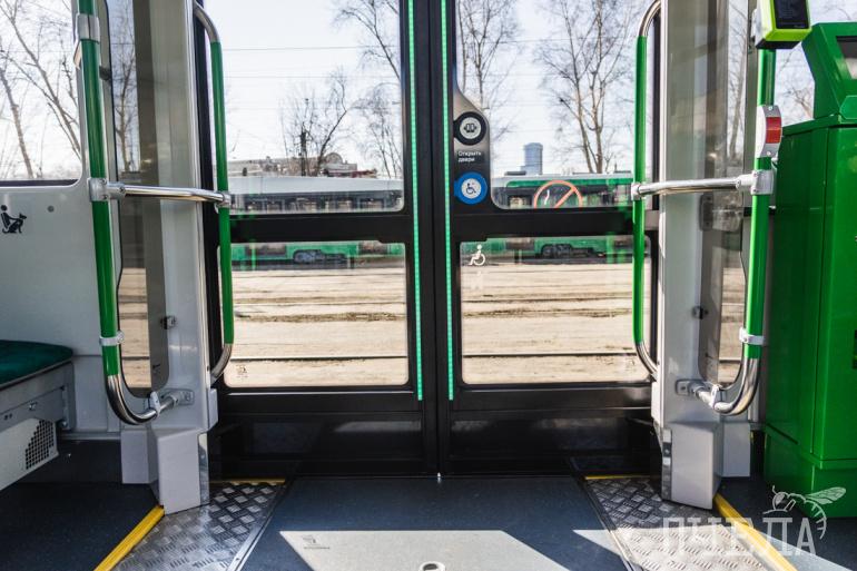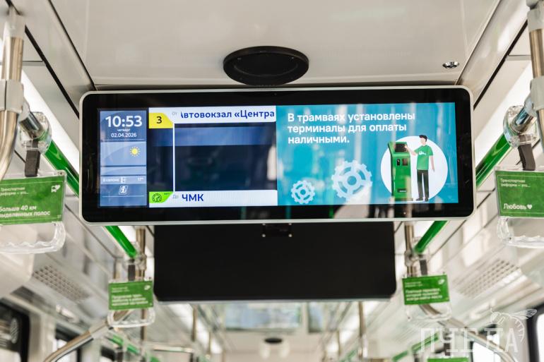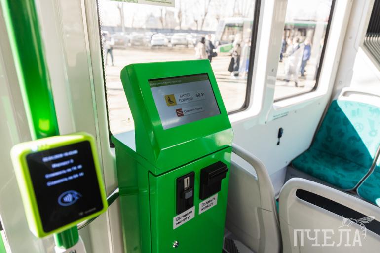 Ещё трамвай оснащён валидаторами, камерами по безопасности, имеет связь с МЧС на случай каких-то непредвиденных обстоятельств — он автоматически прерывает трансляцию на табло и предупреждает о каких-то мероприятиях.