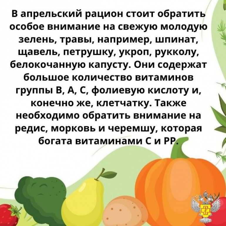 Весной наш организм нуждается в сбалансированном и разнообразном питании, ведь в этот период возрастает риск подхватить простуду или впасть в депрессию. Какие продукты стоит включить в рацион в апреле, рассказали специалисты Роспотребнадзора.