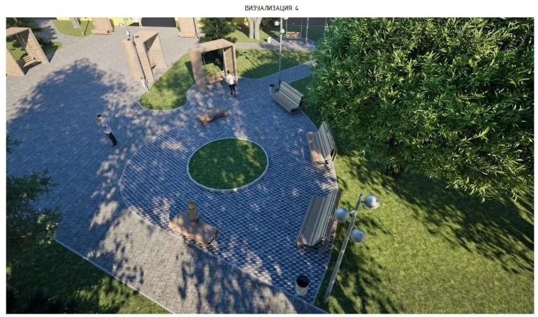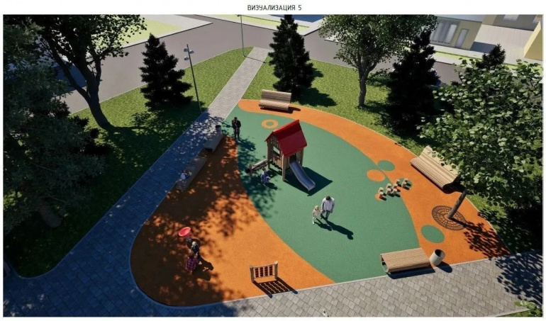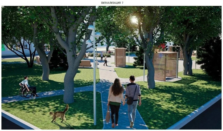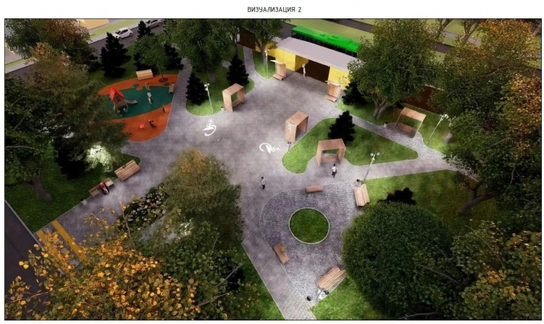На территории обустроят тротуары, сделают зоны отдыха для жителей, установят скамейки и урны. Для детей сделают игровую зону с безопасным покрытием, построят карусель и интерактивную стенку. Ещё тут появятся освещение и камеры. Все работы планируют завершить до 1 июля.