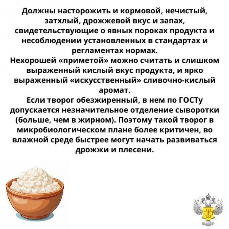 Качественный продукт не должен иметь кормовой, нечистый, затхлый, дрожжевой вкус и запах.