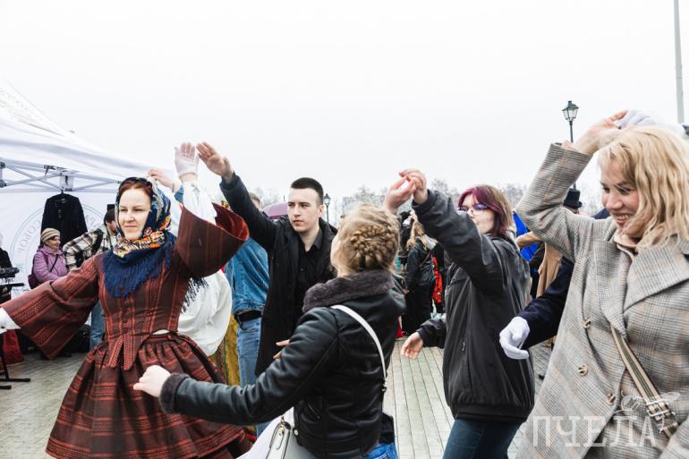 Гостей встречали задорные артисты, которые заводили хороводы