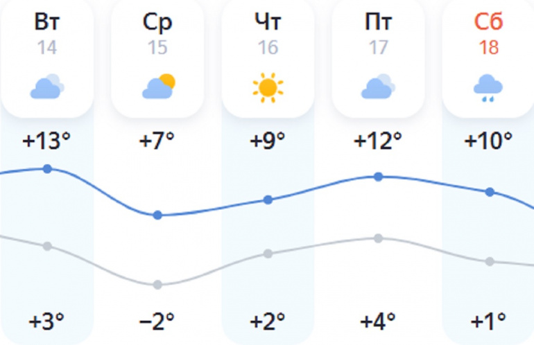 В Челябинске существенных осадков сегодня не прогнозируется, температура будет колебаться около +11…+13 градусов. По данным «Яндекс.Погоды», неделя пройдёт практически без осадков, по ночам температура порой будет опускаться до -2, дневной максимум — это +12.