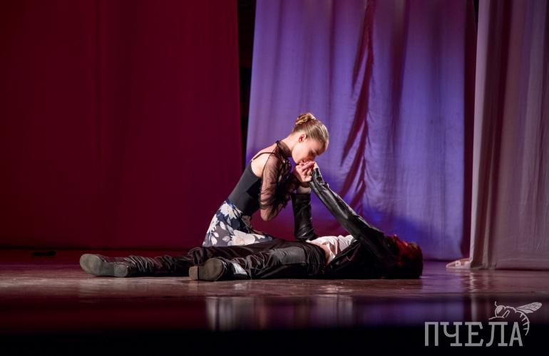 На сцене с помощью языка танца студенты рассказали множество историй. Танцоры показали весь спектр чувств — от радости до боли. Челябинский коллектив взялся за глубокую и тяжёлую тему — жизнь людей в концлагере времён Великой Отечественной войны.