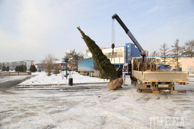 Кедры высадили около органного зала «Родина» сегодня, 16 декабря. Эти деревья приживаются в холодное время года.
