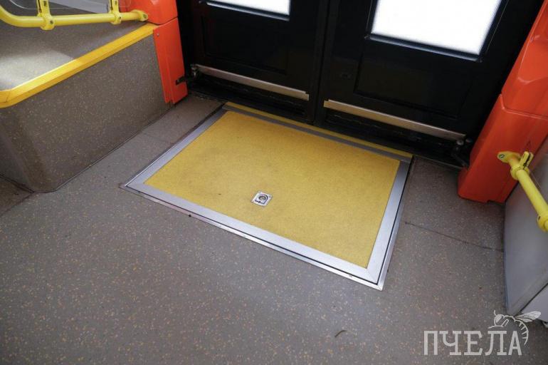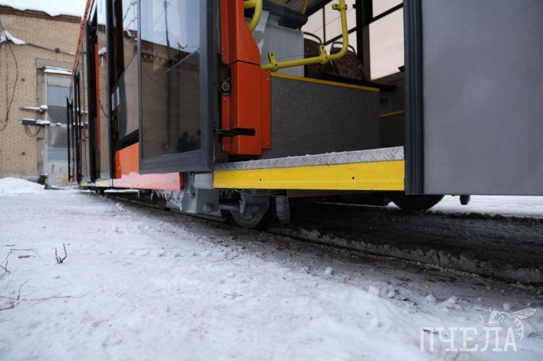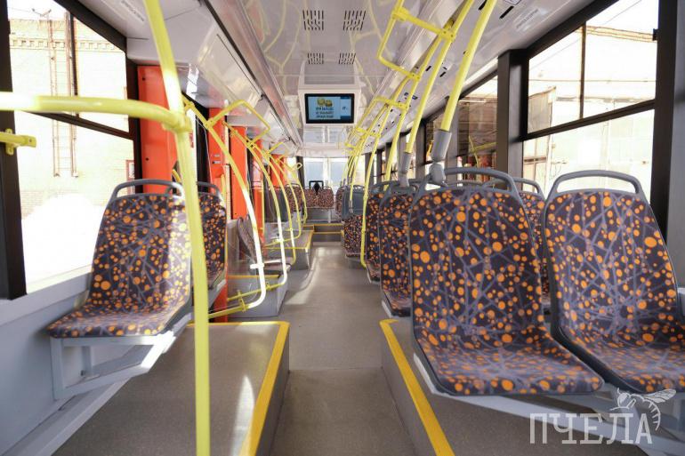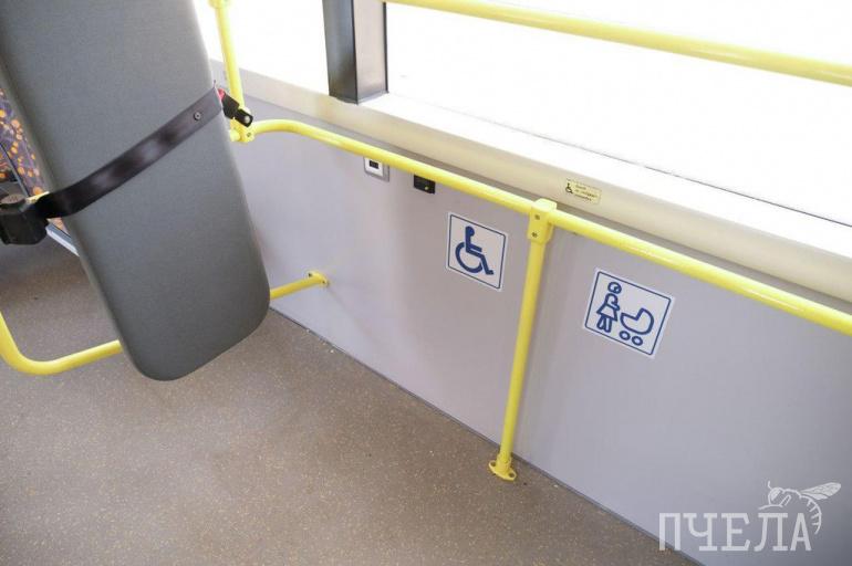 Трамвай оборудован для людей с ограниченными возможностями — есть выдвижная аппарель, а также специальное место в салоне, где можно пристегнуться.