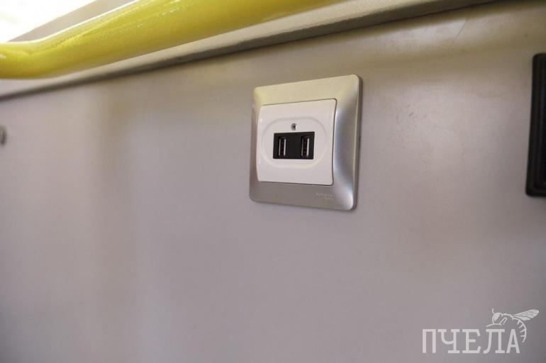 Дмитрий Семизоров рассказал, что трамвай оборудован видеокамерами, которые позволяют водителю наблюдать за ситуацией в салоне, розетками для USB. При необходимости в трамвай можно установить модуль раздачи wi-fi и ряд других опций, например, увеличить количество камер.
