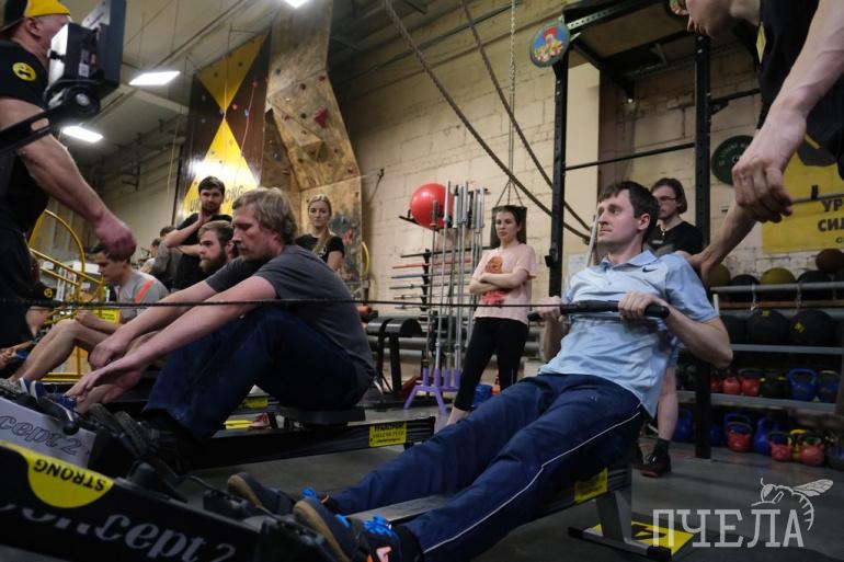 Соревнования по кроссфиту состояли из двух этапов — скалолазания и испытания выносливости на гребном тренажёре. Они прошли в центре «УралСтронг» Дмитрия Кононца, известный силач сам стал судьёй соревнований.