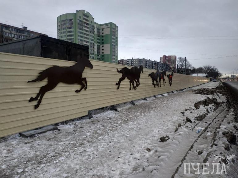 На защитных экранах вдоль «Меридиана» в Челябинске поскакали лошади