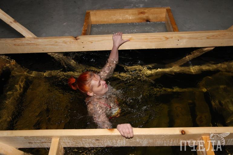 Рядом с купелью оборудовали тёплую раздевалку, под ноги у проруби постелили солому.