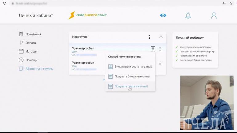 — Способ регистрации в личном кабинете сейчас упростился. Это занимает не более пяти минут, — объяснил главный специалист центра развития клиентского сервиса Георгий Логинов. — Слева есть пункт «абоненты и группы». Заходим туда и видим все лицевые счета, которые мы привязали. Чтобы отказаться от бумажной квитанции, есть иконка «способ получения счёта». Выбираем её, нажимаем «получать счета на e-mail», подтверждаем наш выбор и готово — получаете квитанции на электронную почту.