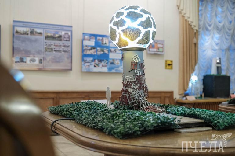 В понедельник, 10 февраля, в Камерном театре открылась выставка арт-объектов «Интервью с будущим. Челябинск — 2040». Автор работ — челябинский проектировщик и коллекционер Олег Чернышев. На выставке представлены около 40 концепций, проектов, макетов арт-объектов, которые могли бы преобразить облик промышленного города.