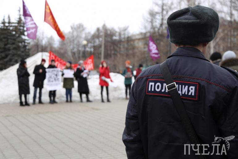 За ходом митинга следили сотрудники полиции, передает корреспондент Pchela.news.