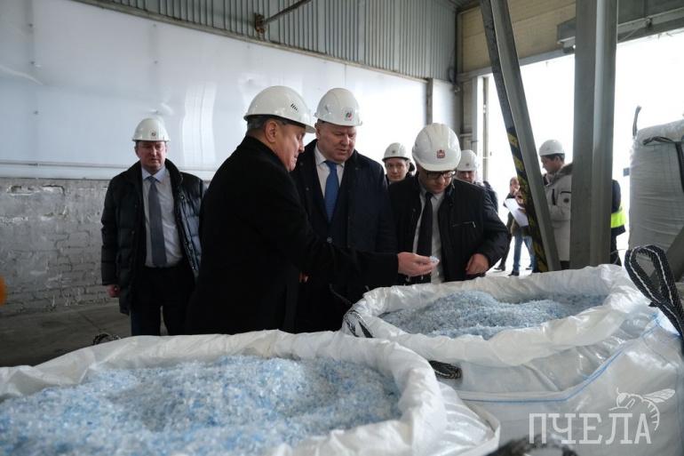 Николай Цуканов также побывал на предприятии по переработке вторсырья, где ему продемонстрировали материалы, которые получаются в результате работы.