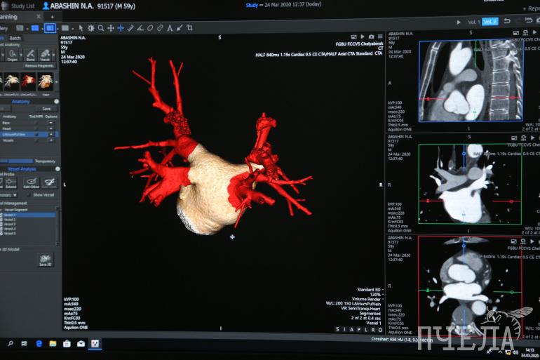 — Мы в кардиоцентре делаем протезирование клапанов сердца без разрезов и даже без наркоза. Но чтобы подобрать протез клапана для каждого больного, нужно полное КТ-исследование. Порядка 1.5–2 миллионов стоит клапан, тут нельзя ошибиться, — рассказал главный врач «Федерального центра сердечно-сосудистой хирургии» в Челябинске Олег Лукин. — Вся подготовка идёт на этом аппарате.