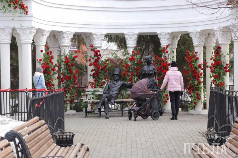 В конце февраля ротонда зацвела алыми розами, а потому это место превратилось в великолепную локацию для фотографий.