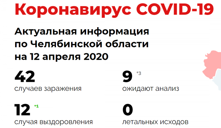 По данным сайта короновирус74.рф, на 12 апреля заболевших, по-прежнему, 42 человека. За прошедшие сутки новых подтверждённых случаев нет. Условно подтверждённых — 3.