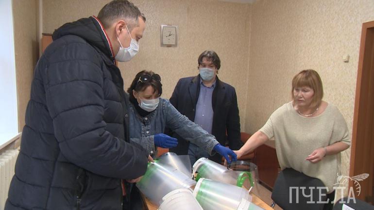 Маски по внешнему виду напоминают строительный щиток, но 3D-констукция в несколько раз легче и весит всего 60 граммов в сборе. Средства защиты доставили в больницу скорой помощи Металлургического района.