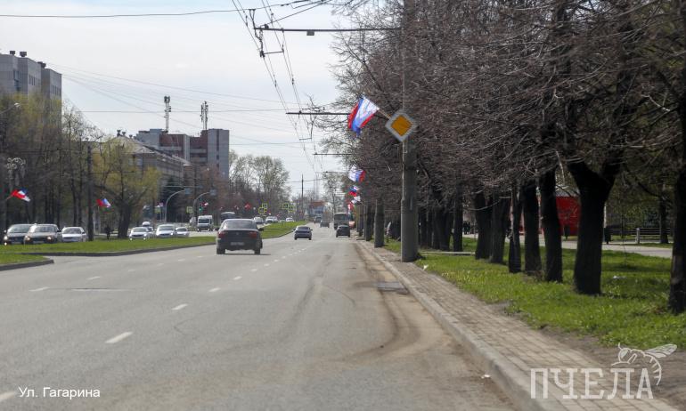 Флаги украшают улицу Гагарина, а вот пыль — не очень