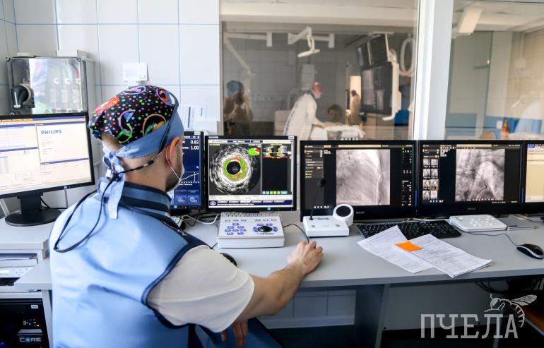 В основе всей операционной — суперсовременная система навигации, с помощью которой хирурги могут увидеть проблему со всех сторон, оценить масштаб бедствия, быстро просчитать варианты и выбрать единственное верное решение. Она включает аппарат для внутрисосудистого УЗИ и систему, которая объединяет рентген, УЗИ и станцию для измерения функциональных параметров кровотока в сосудах. Объединённая для всех этих установок компьютерная программа демонстрирует сосуд во всех ракурсах снаружи и изнутри в цветном 3D-изображении. А полученная всеми установками информация о состоянии сосудистого русла собирается воедино. Всё это помогает выполнять интервенционные вмешательства на сосудах сердца, головного мозга и всего организма — операции «без скальпеля», через доступ к поражённому органу через сосуды.