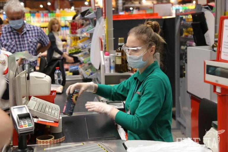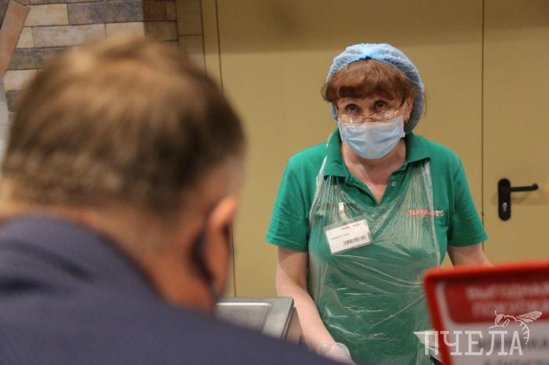 Первым местом, куда нагрянули проверяющие и журналисты, был магазин Spar на улице Труда. Участники рейда обратили внимание, что в масках были далеко не все покупатели, и даже продавцы носили маски лишь формально, не по инструкции.