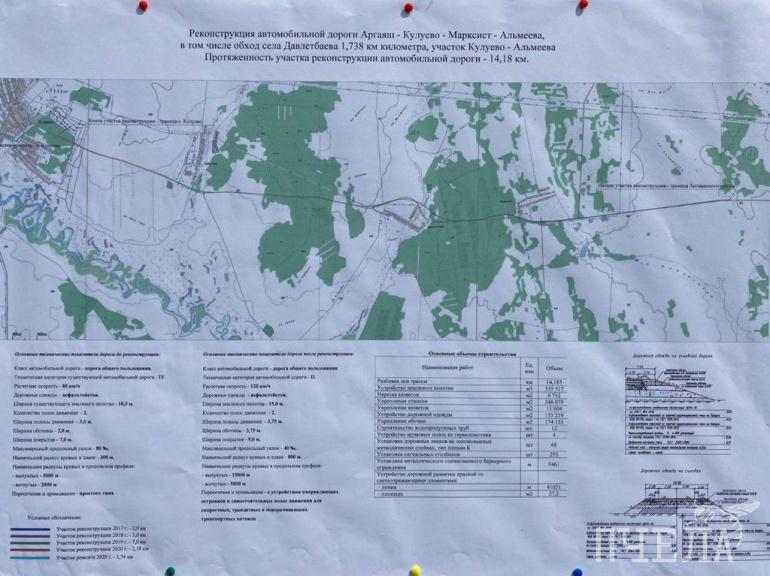 Контракт по реконструкции участка этой автодороги переходящий. В прошлом году в эксплуатацию было введено пять километров, в этом году завершается реконструкция участка протяжённостью два километра и отдельный участок дороги через деревню Кулуево — это 1340 метров, который полностью завершён.