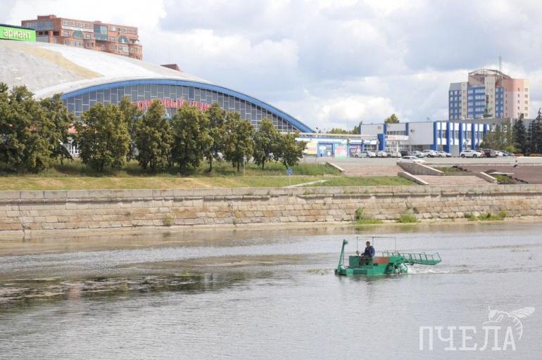 Директор компании «Акватехника» Константин Важенин рассказал, что сейчас в очистке реки задействованы три единицы техники — это плавающие экскаваторы. Они стригут камыш подводными ножницами на глубине до полутора метров, грузят в контейнеры и доставляют на берег. Параллельно водолазы на соседних участках ведут обследование русла реки. Спецтехника работает уже четвертый день.