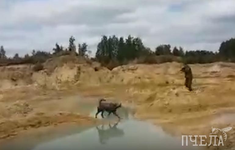 Всё случилось на карьере за ЖК «Александровский». Девушки выгуливали хаски, снимали прогулку на видео. Пёс побежал за уткой, вдруг появился мужчина, предположительно охотник, и хладнокровно застрелил собаку, нажав на курок трижды.