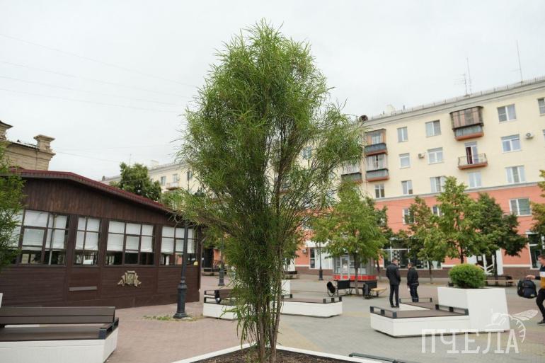 На челябинской Кировке установили десятки стильных скамеек и бетонных клумб