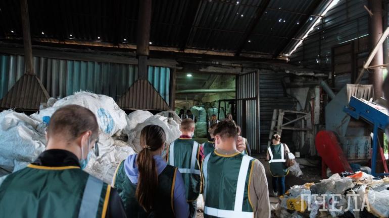 После субботника волонтёры отправились в цех по переработке полиэтилена и пластика «Полигона ТБО». Гостям показали, как вторсырье сортируется, очищается, моется и как производятся гранулы и флекс — разноцветные хлопья, из которых потом делают заличные вещи: мешки, ящики для фруктов, одежду.