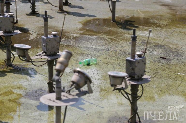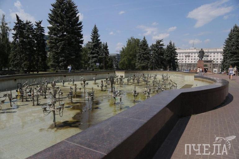 Сегодня, 14 июля, воду из фонтана сольют и прочистят систему от мусора и «зелени», которая появилась из-за жары. Решить проблему химикатами не удалось. Уже завтра фонтан планируют запустить.