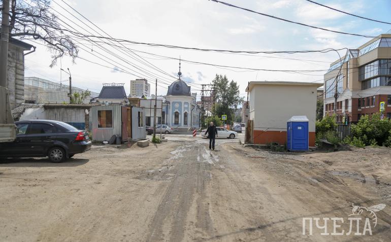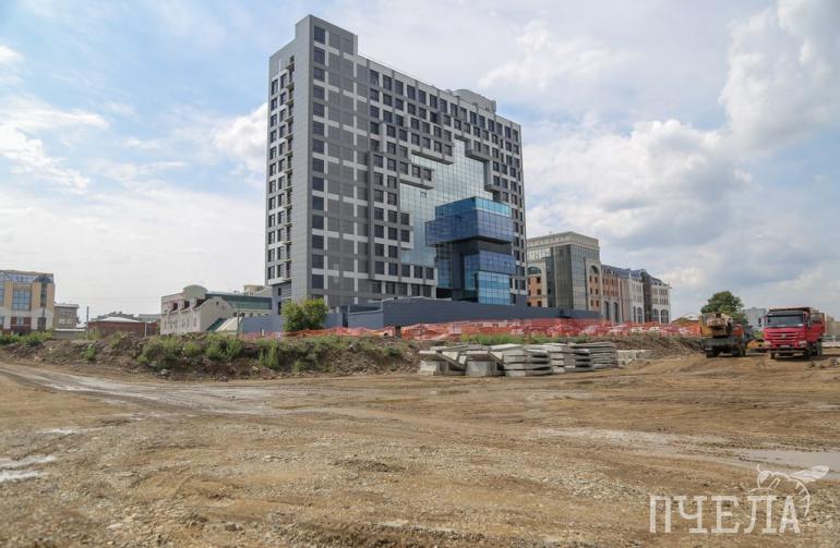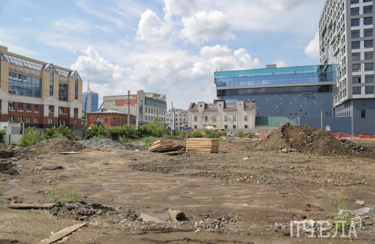 Если смотреть на стройку со стороны улицы Пушкина, бросается в глаза строительная площадка напротив дома Колбина. Пространство освободили от старых построек и разровняли — это место, где в будущем будут проводить арт-мероприятия, размещать выставки и галереи. Здесь же, со стороны улицы Пушкина, будет главный вход в арт-сквер. А серый бетонный забор на Труда уберут. Неподалеку раскинется детский сквер с игровыми комплексами для разных возрастов, зона отдыха со скамейками, тенистыми деревьями и кустарниками.