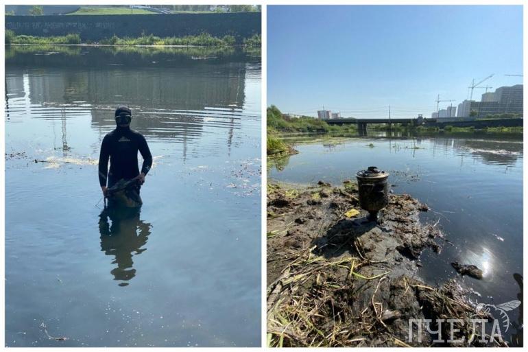 Помимо привычного мусора — банок, бутылок, покрышек и строительных материалов — в реке периодически обнаруживают необычные предметы. В списке находок — агитационные газеты, продуктовые тележки с содержимым, а в прошлом году на поверхность подняли настоящий боевой снаряд.
